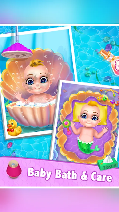 "Mermaid Mom Newborn Care Game" is a fun and exciting game that allows you to experience the joys and challenges of being a mermaid mother. As a mermaid mom, you have just given birth to a beautiful newborn mermaid and it is now your responsibility to take care of her.