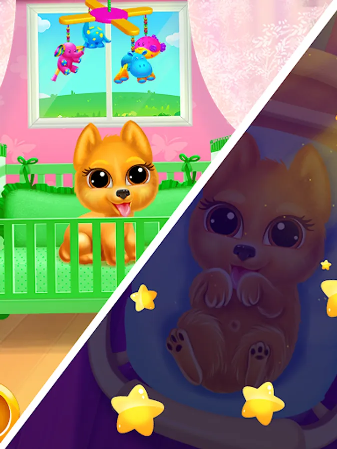 The game starts with the mother dog giving birth to a litter of puppies. Your job is to help the mother take care of her little ones by feeding them, bathing them, and playing with them. You will need to keep an eye on their health and happiness levels, making sure that they are always well-fed, clean, and happy.