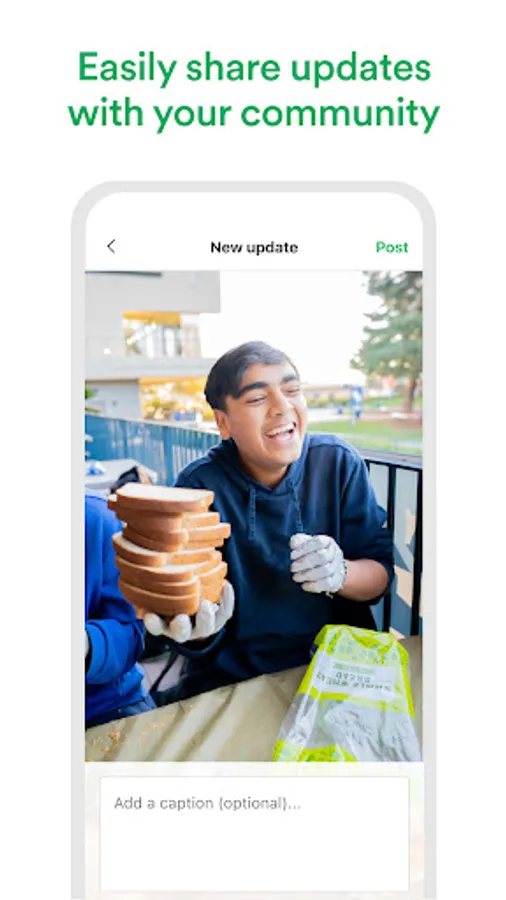 • Post updates on the go: Record and share video updates or simply post photo or text updates within the app to let supporters know about your fundraising progress