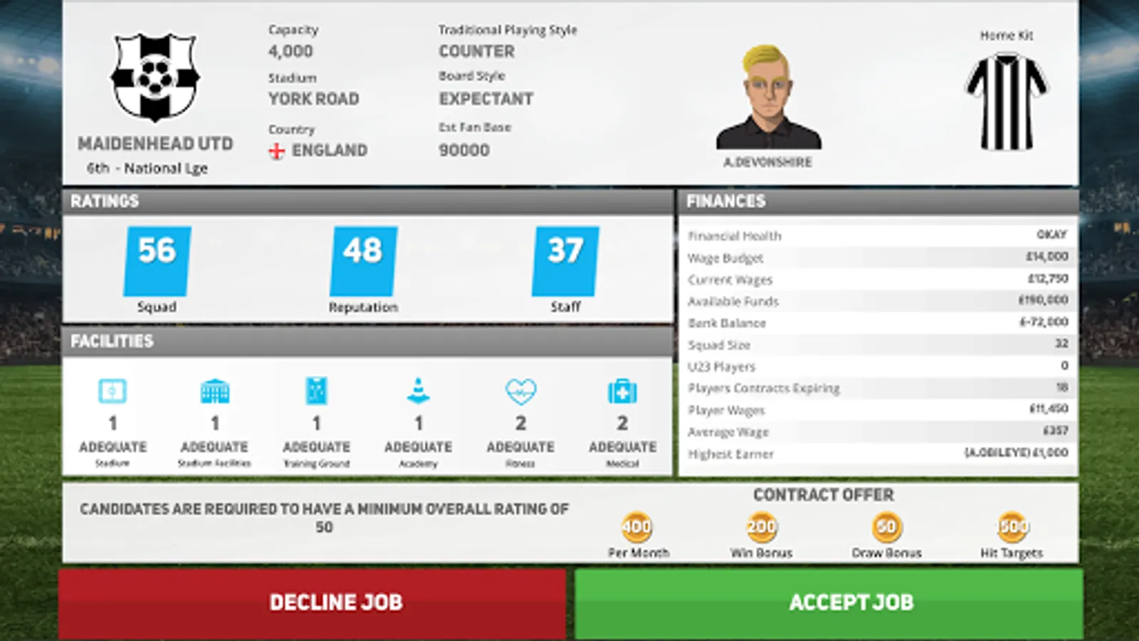 Just like real life, your decisions affect the attitude of the board, team morale, and even the fans. How you engage with press and media, ticket prices, the quality of your squad and the potential of your Academy prospects all have a bearing.