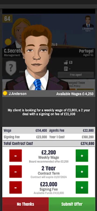 Improve your reputation and move to bigger and better jobs as you earn reputation and build coins to one day being able to mount a takeover and own your very own club and become the chairman!