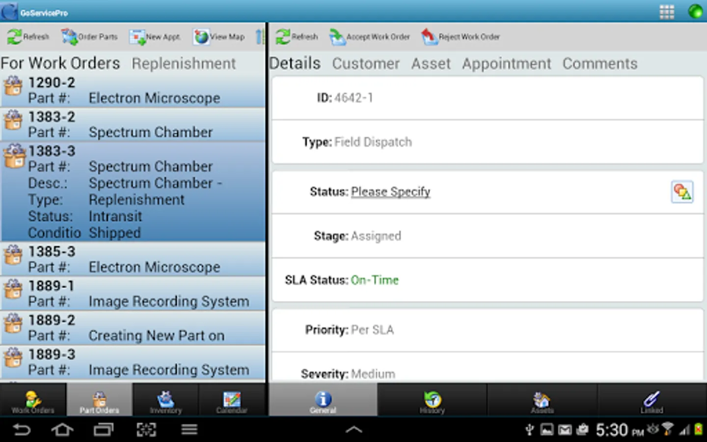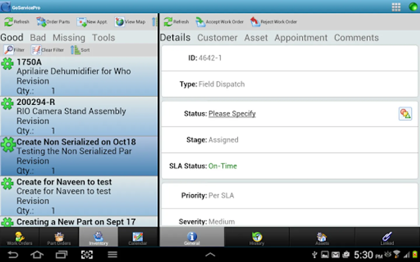 Inventory - How many times have you seen a field tech spend 20 minutes searching through the back of their van, only to find out that they don’t have the part on them needed for this particular job? With GoServicePro’s mobile app, this is a thing of the past! Field techs each have an inventory assigned to them that show up right on the mobile app.