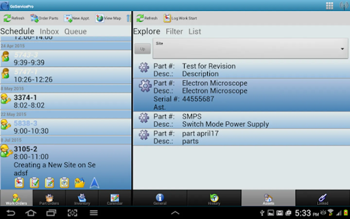 Installing, removing, and exchanging parts can all be logged. Serial numbers can be included for serialized parts, and bar codes can even be scanned to quickly find the part!