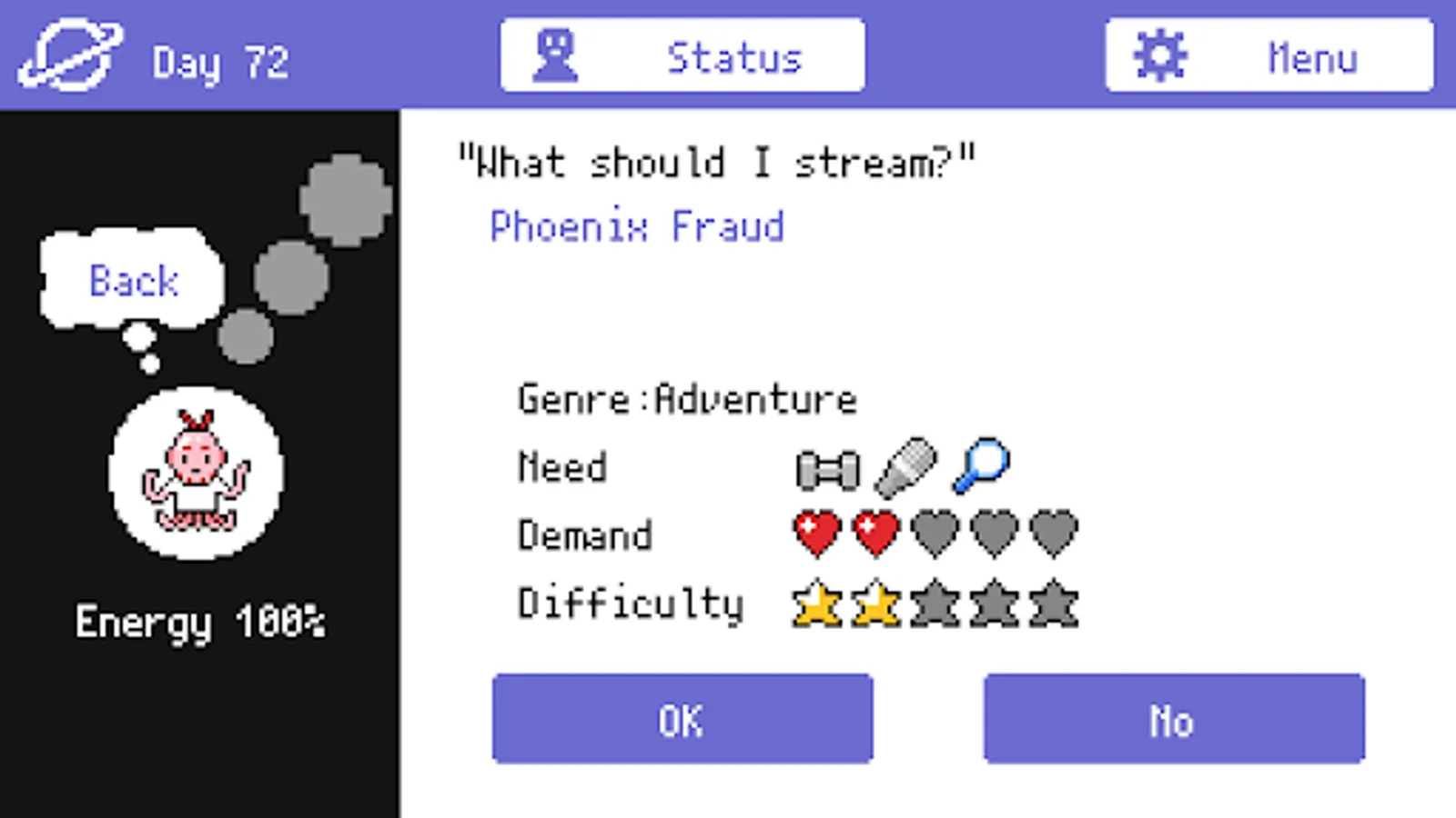 Improve the Martian's streamer skills and get as much subscribers as possible!