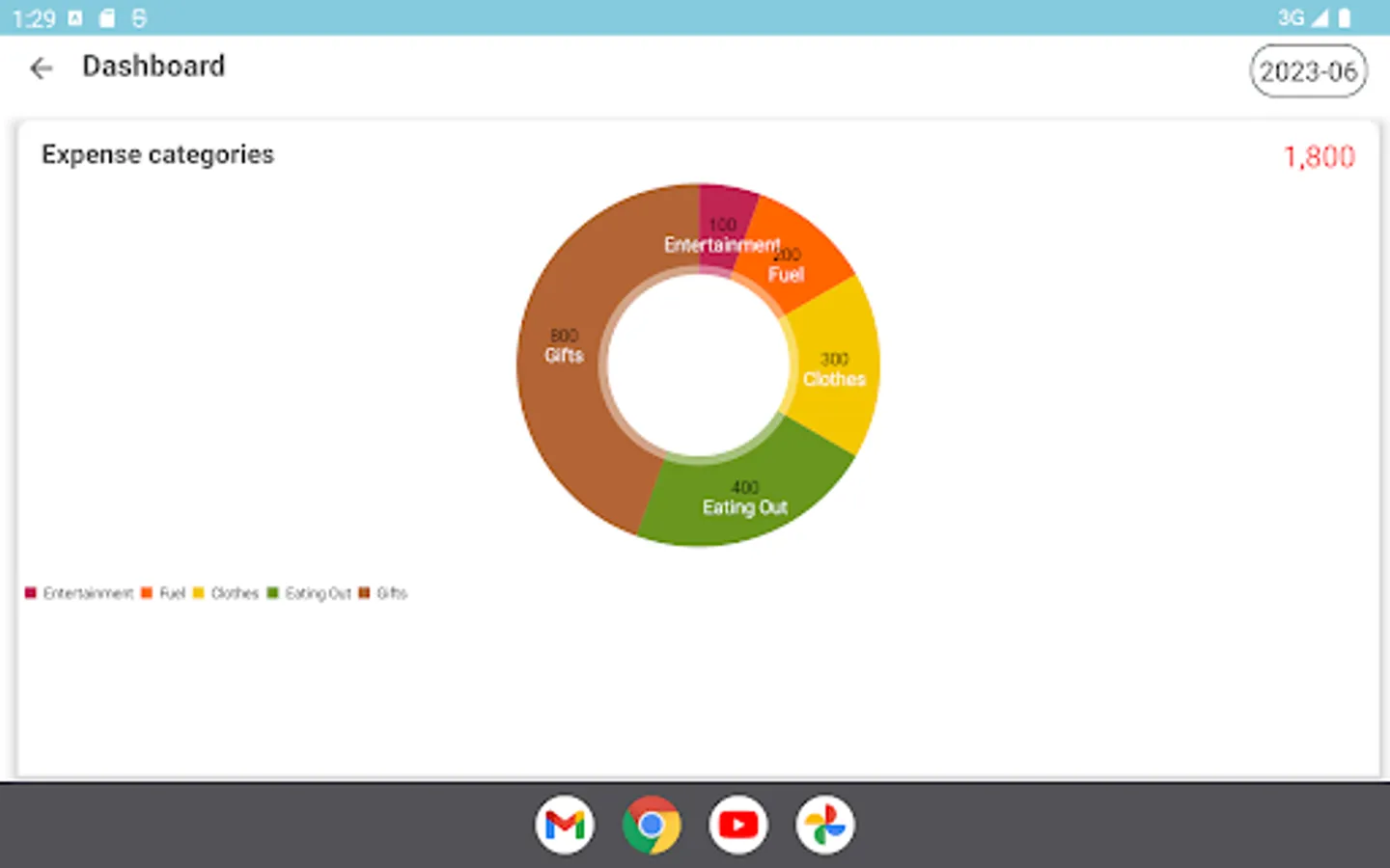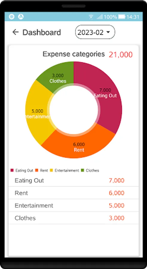 √.Expense categories pie chart.