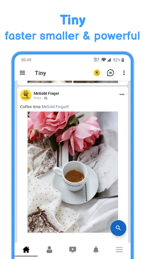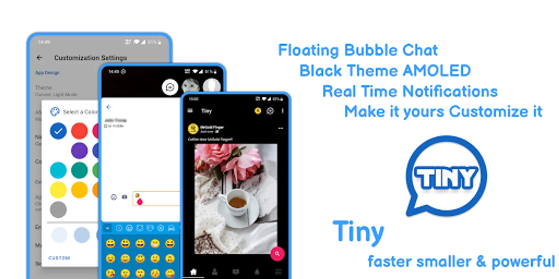 Meet Tiny for Facebook, the best Chat app alternative - lightweight, highly customizable, and battery-friendly, with a strict “no tracking” policy to ensure your privacy is secured. Tiny is the most complete alternative to your favorite social network