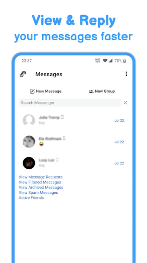 No need to download another app. You can chat and message your friends right within Tiny for Facebook.