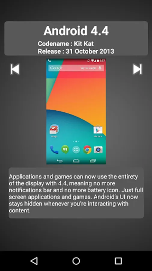 - Android Kitkat, version 4.4