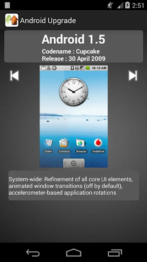 - Android Cupcake, version 1.5