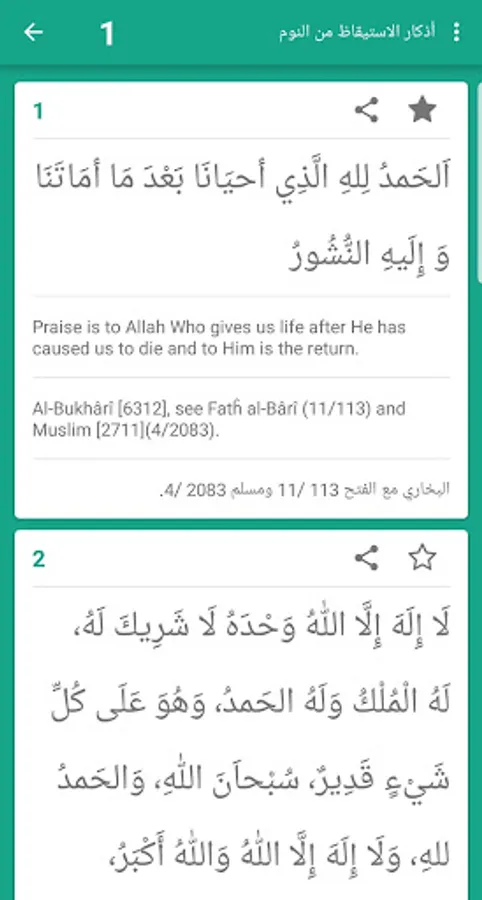 - أمكانية إضافة الأذكار التي تقرئها بكثرة إلي قائمة الأذكار المفضلة لسهولة الوصول إليها بعد ذلك