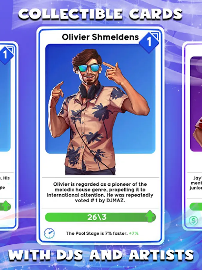 Collect rare, epic & legendary cards to attract celebrities and new managers, keeping your visitors entertained and boosting the growth of your music festival!