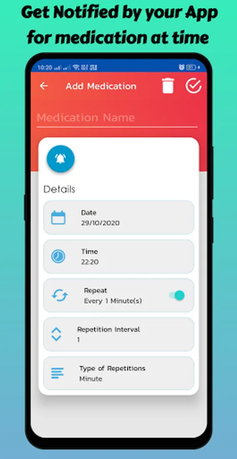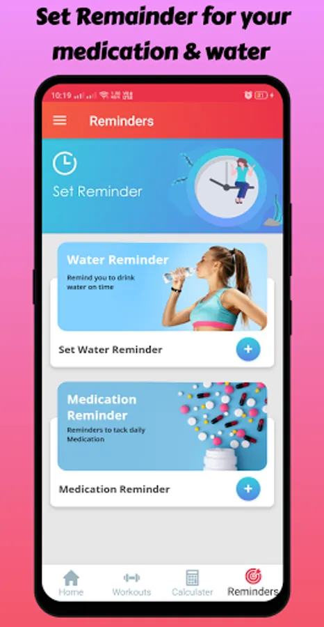 Reminders - Set your remainders and it reminds you to drink water on time and it shows how much percentile you drunk and your target and set your mediation remainder and it reminds to tack daily medication on time and set your mediation as date, time, and how much times you have to repeat and repetition interval, type of repetitions.