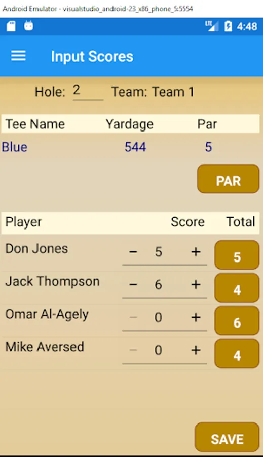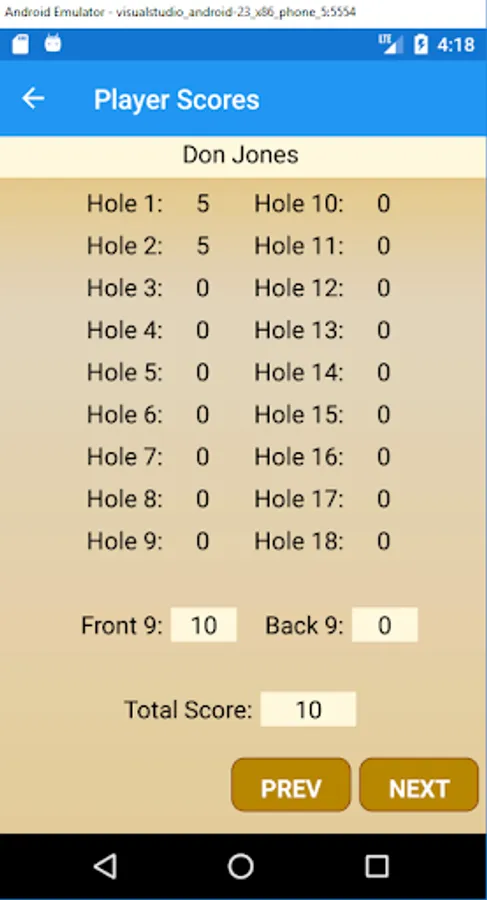 This App allows players to enter golf scores on a hole by hole basis.