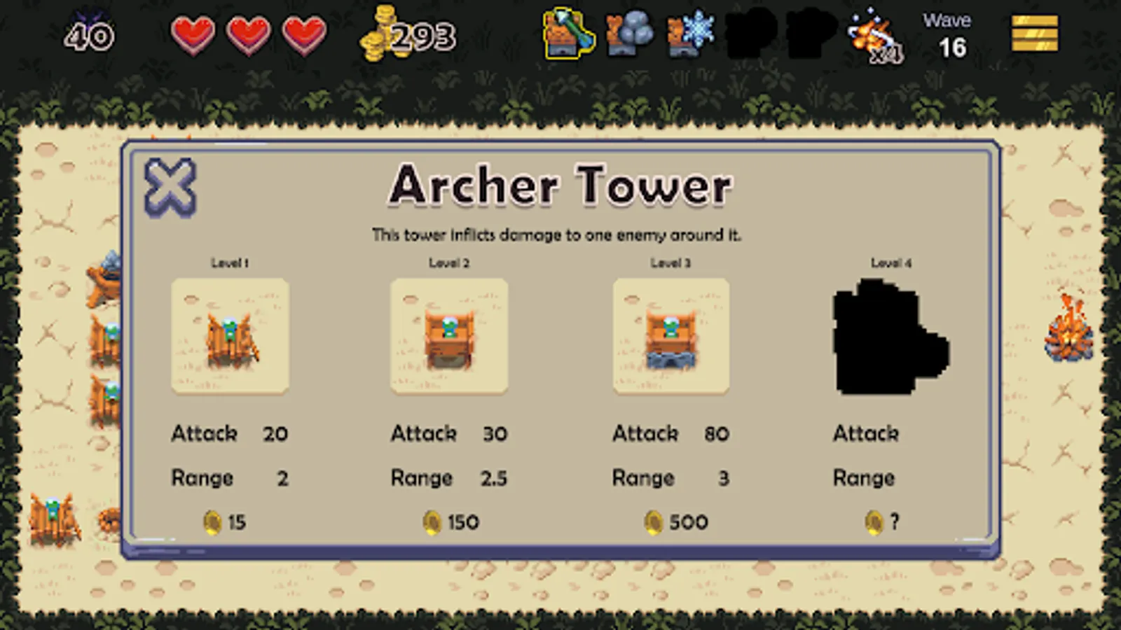 In Endless mode, you can play infinitely to try and test your mazing skills. Every 3 waves, you will choose a different power up. Each power up are associated with the types of towers you have in play. It's not a random selection of power ups!
