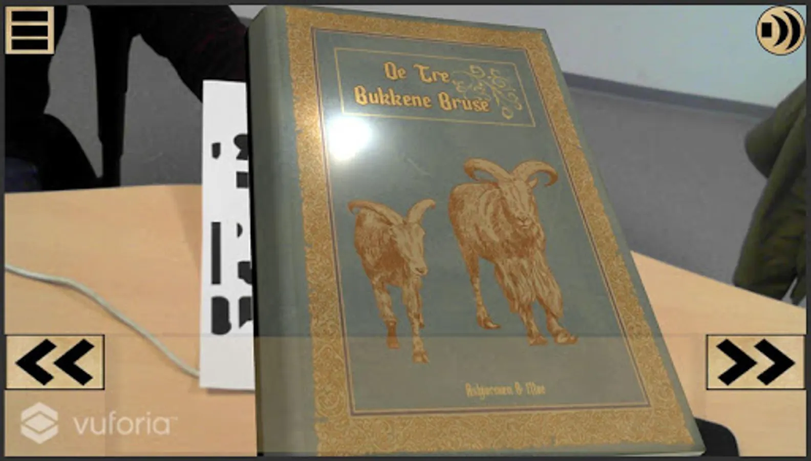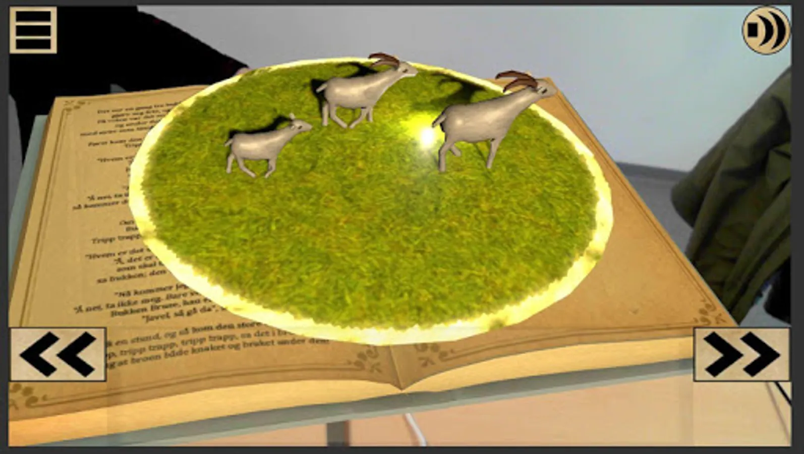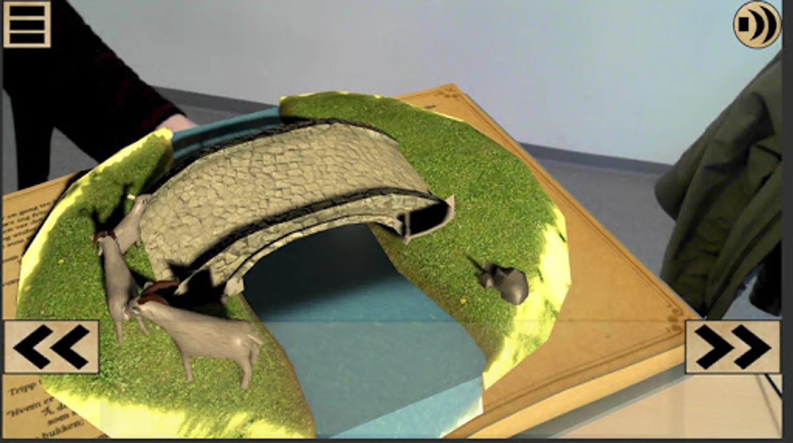 An AR application to view an animated version of The Three Billy-Goats Grim. Scan the QR code and the magical book shows up,