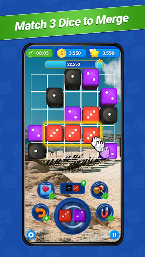 Simply choose the right dice and drop them in! Some of it’s skill, and some of it’s up to chance! Do you have what it takes to become a Dice Match & Merge master and show the world your stuff?