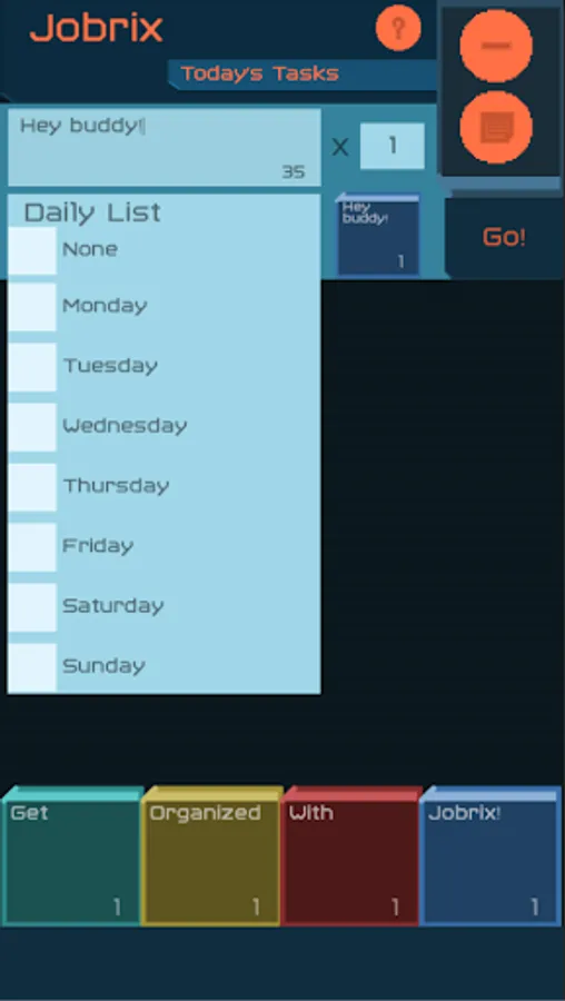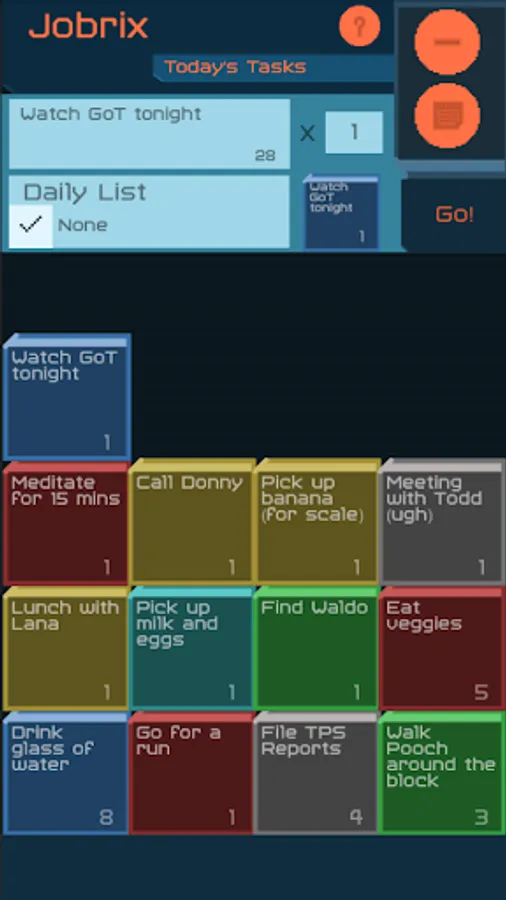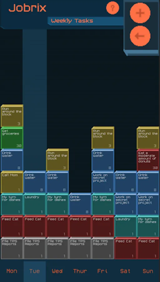 Organization for the organically disorganized! Inspired by puzzle games, Jobrix reimagines daily task lists as puzzle bricks. Each brick is customizable and repeatable, and is made in a simple and quick user interface. Jobrix can also handle weekly tasks with an automatic scheduler, allowing you to plan out your week ahead of time.