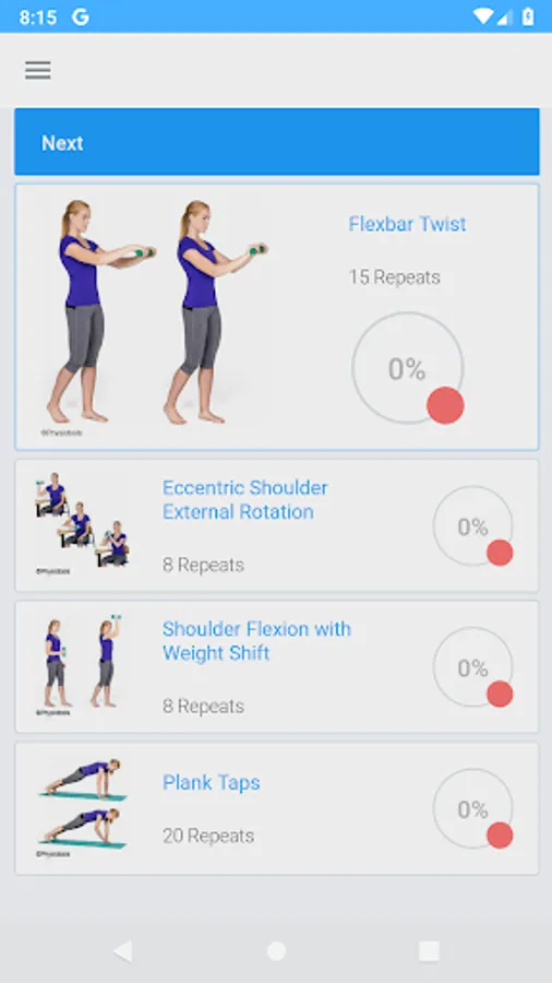 - Ability to view your previous and upcoming exercises