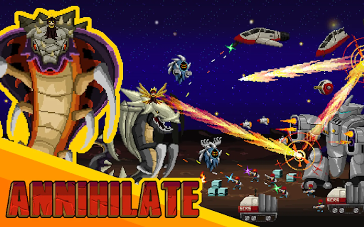 Start your destruction spree and destroy everything on your way through different beautifully detailed pixel style locations. Ever wondered how it looks like when a giant monster destroys a wild west town? Or clashing against the brave Knights Templar? Gigapocalypse has the answer. But beware: Nasty soldiers, wizards, drones and mechs will do everything to stop you!