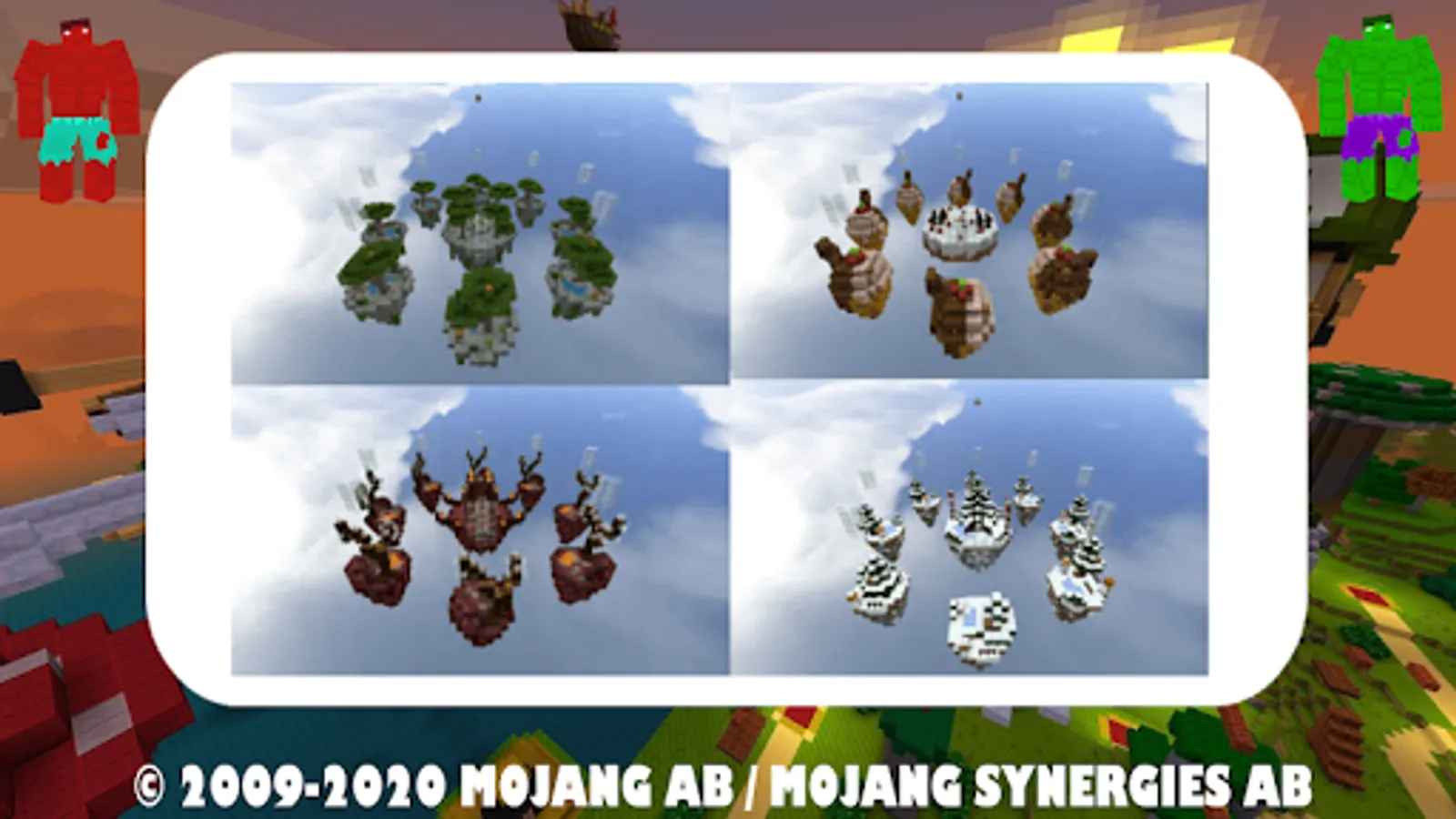 This is a classic map of skywars, you can play with 2 or up to 8 players, it includes 8 different scenarios to play.