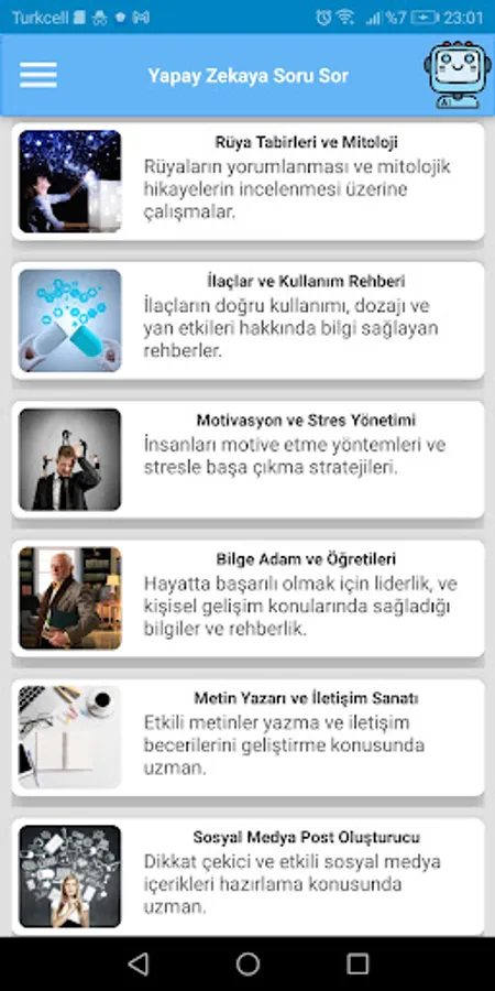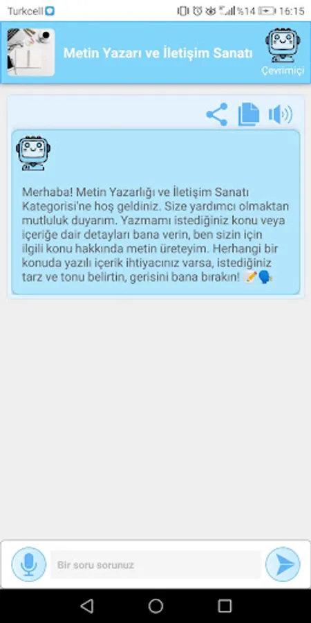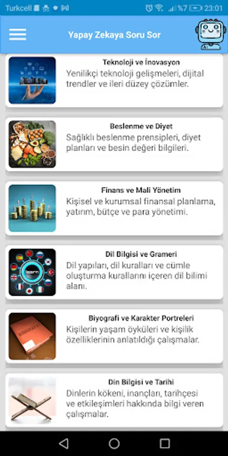 Geniş Konu Yelpazesi: Uygulamamızla her konuyu konuşabilirsiniz. Eğlence, kültür, seyahat, teknoloji, sanat ve daha fazlası için mükemmel bir sohbet partneri.