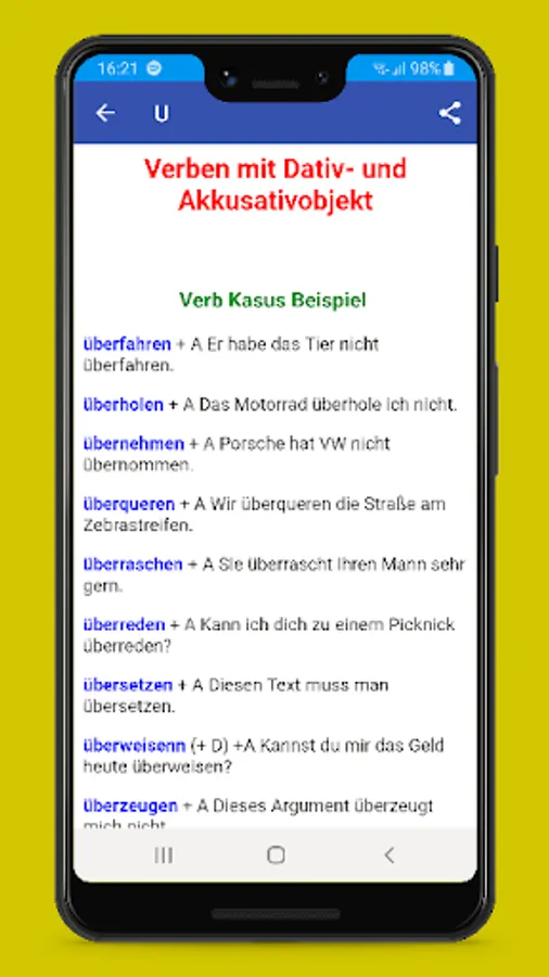 "Dative and Accusative Explanation" is a modern and communicative Android app for beginners lessons. It is aimed at adult A grammar list on verbs with dative and accusative.