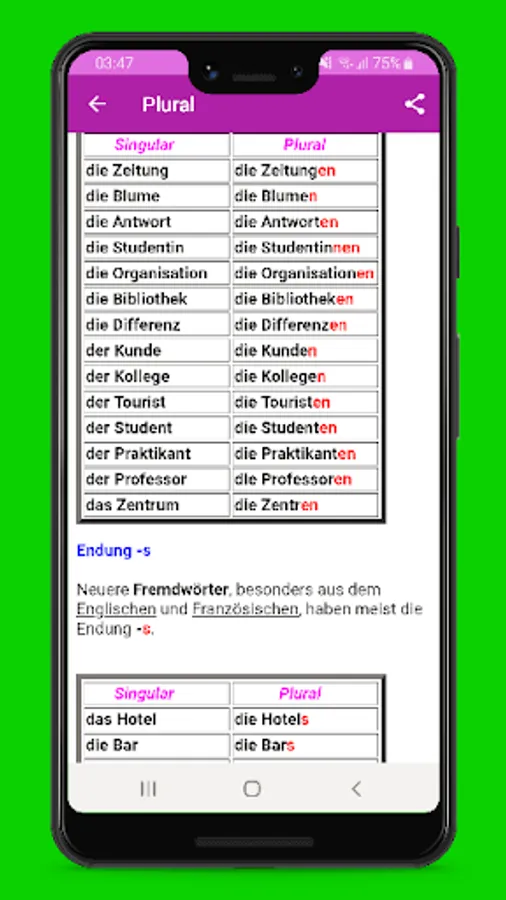 Here you can find a summary of German grammar with the most important rules, declination tables and grammatical structures. Everything from one source, short and to the point. Offline and free. But what can you do here too?