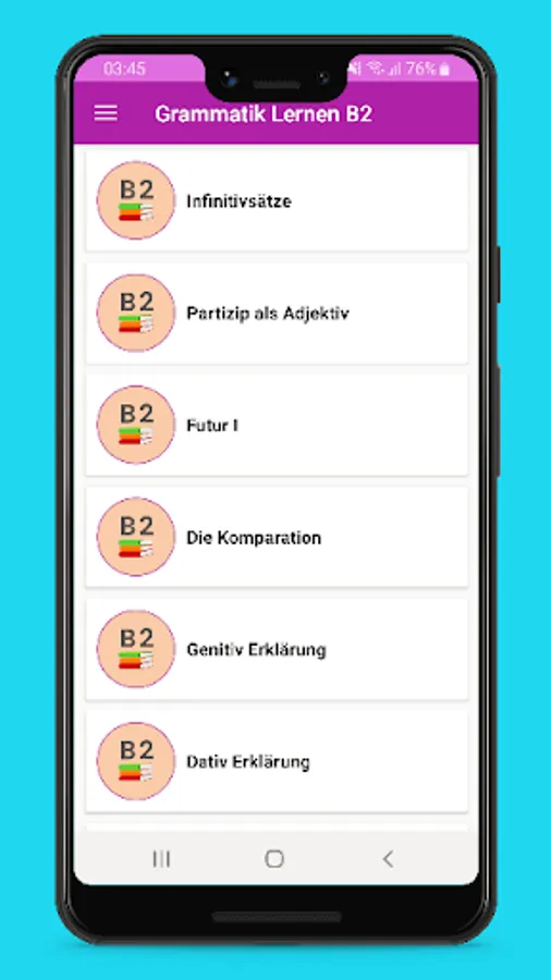 This German grammar coach and vocabulary trainer offers more than 200 simple lessons, grammar exercises and practice games. It is suitable for intermediate B2 and also includes a simple color-coded grammar book, listening exercises and challenge games to test your German language skills.