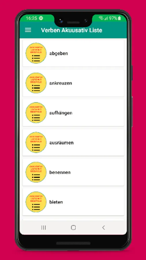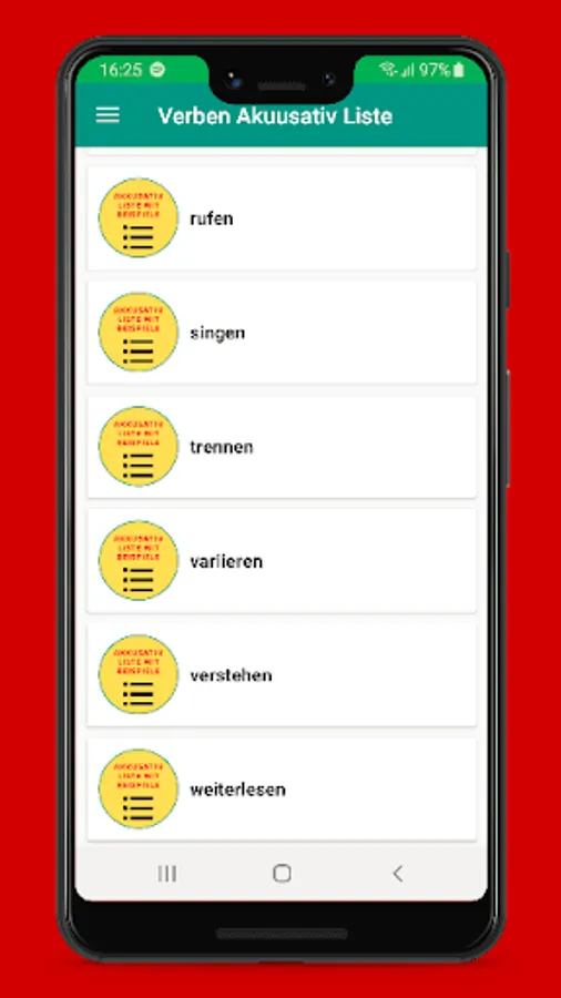 Selection of the most common verbs with accusative. Learn more than 150 verbs with accusative in German! These exercises will help you to test. Often we use cards to learn new verbs and vocabulary. With this app you can improve on your phone and with this method your German.