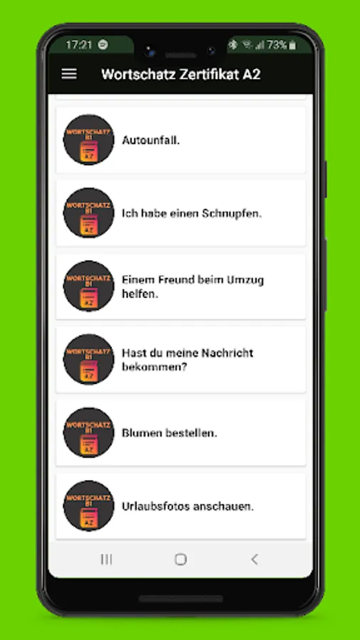 For this reason, we offer you a suitable app "vocabulary German certificate A2", which can help you a lot to improve your vocabulary and build more.