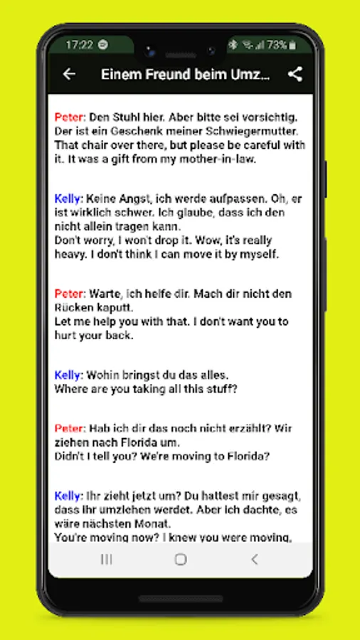 Here you can on this app a list of the 500 most important words in the German language. In addition, there is also a short English translation, which comes from various well-known sources to understand the German words very well. Let us come and learn German speak with us now.
