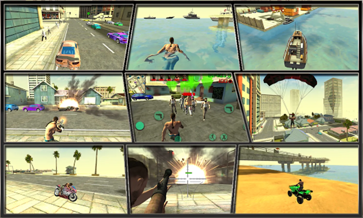 3) About 15 types of weapons, including a six-barrel machine gun, flamethrower and RPG.