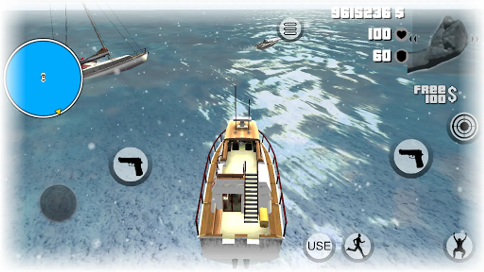 1) You can freely navigate around the big city and swim along the