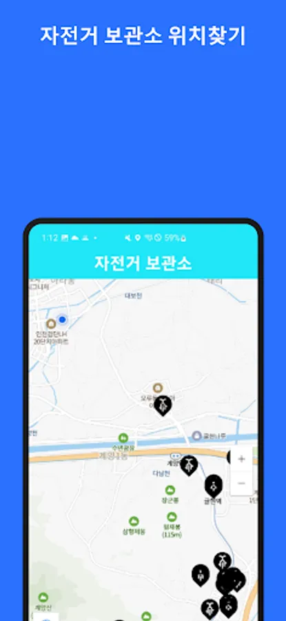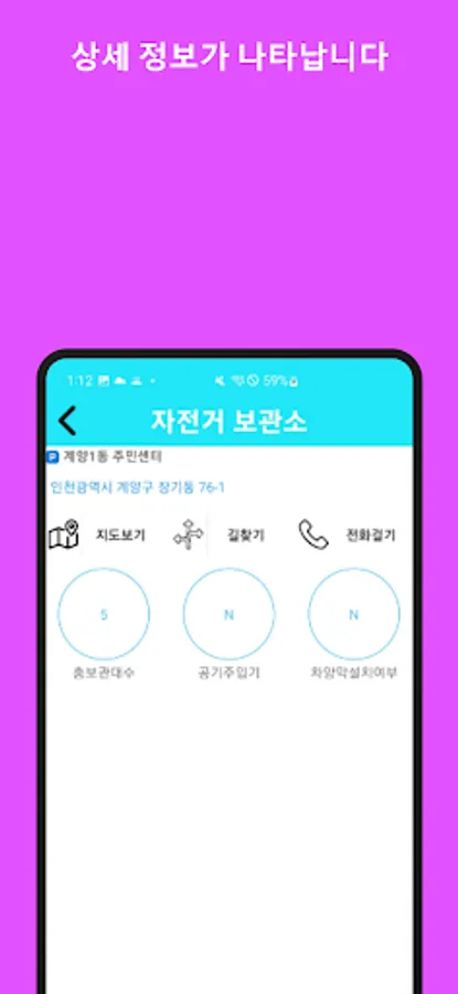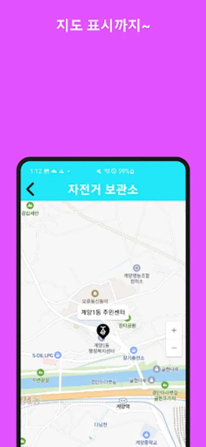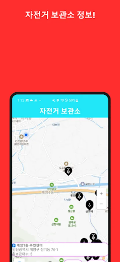 It is an app that shows the location and information of the bicycle storage book on a map. If you click the marked area, the directions will start.