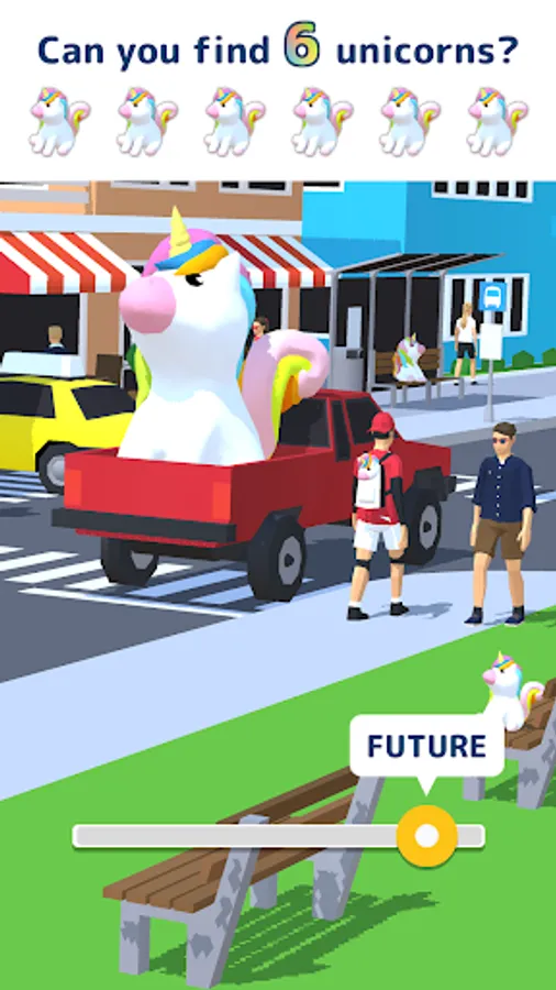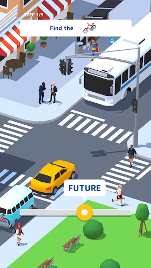 This is a game where you go back and forth between "past," "now," and "future" to find and locate various hidden objects. Once you find them, tap to collect them all and complete the scavenger hunt! It all depends on your intuition!