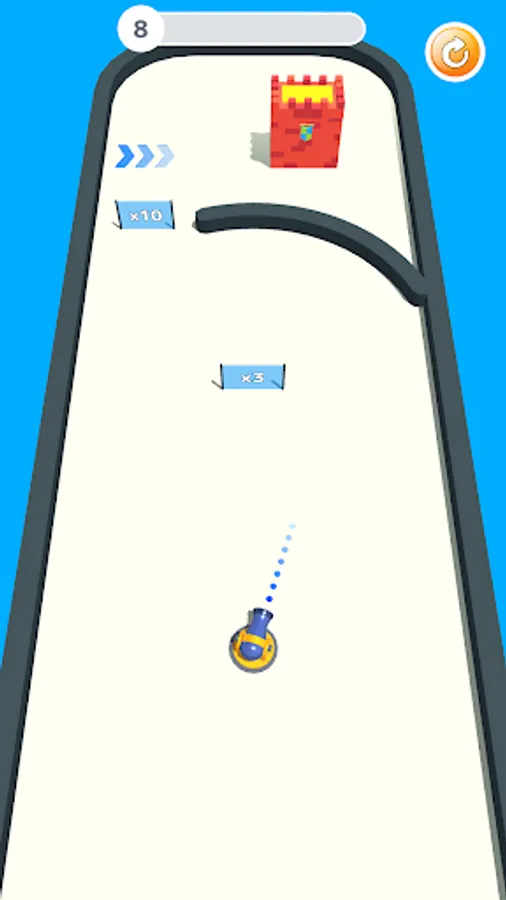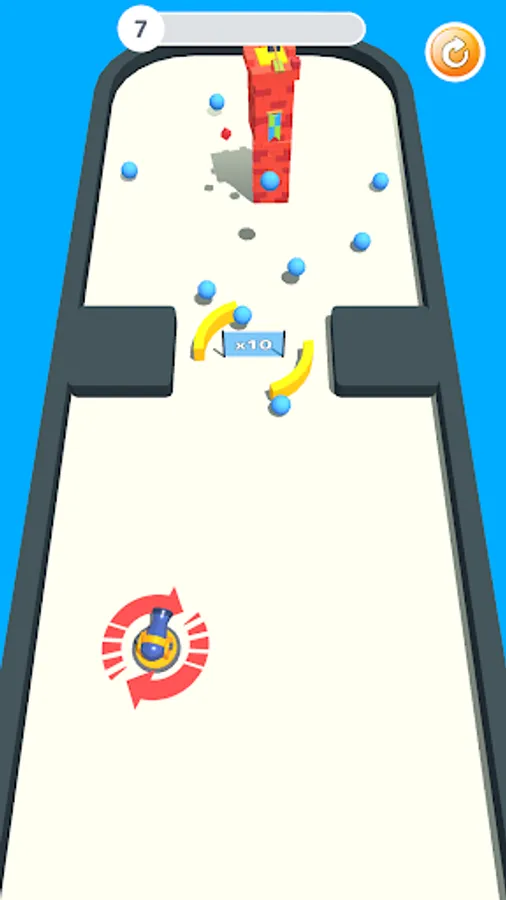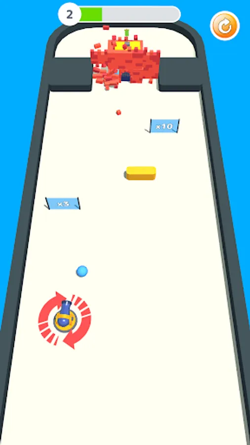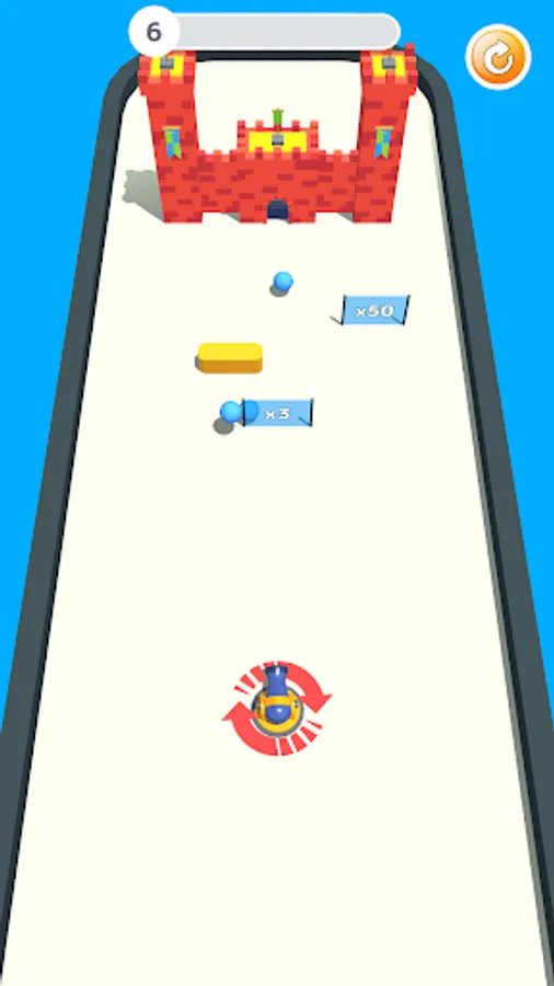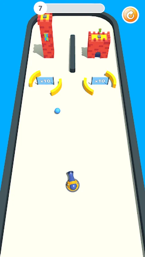 Fire your cannon, destroy the castle, and let it fall! You can increase the number of bullets at once by putting them through the blue gate. If you do well, you can destroy the castle with a single shot.