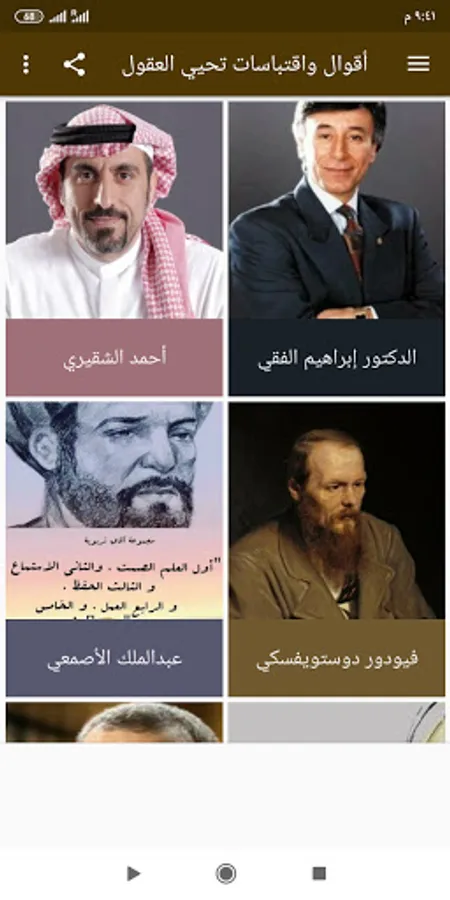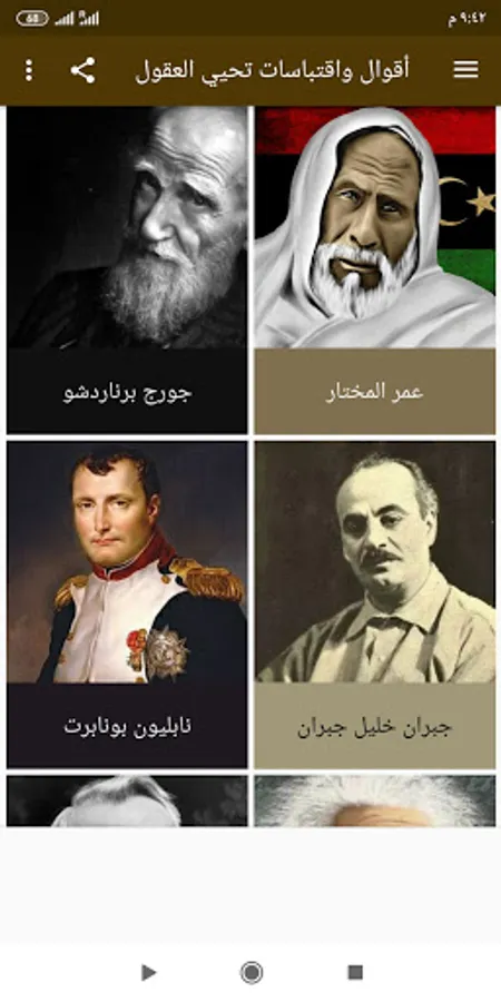 The application, as we talked about, displays a group of famous quotes and sayings from leaders, thinkers, scholars and celebrities to benefit from and share with your friends through various social networks....