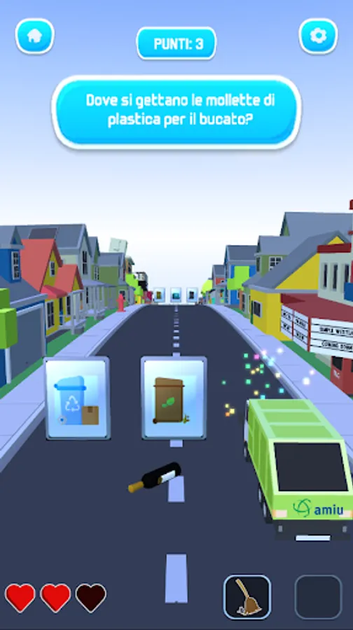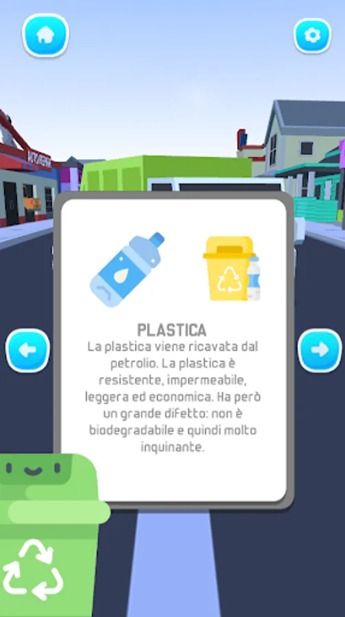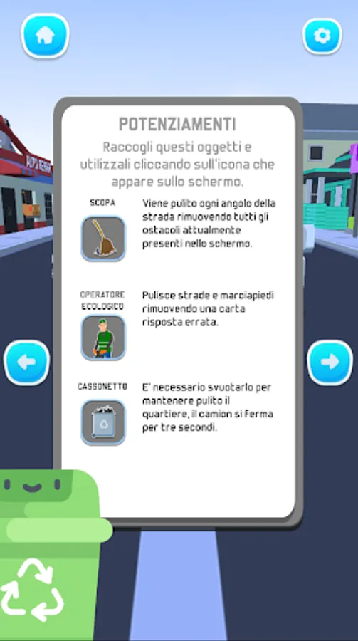 In the game the task of an ecological operator takes place who has to go around the city to collect waste, on the path we meet cards representing the garbage cans and based on the question posed above we will have to move to the correct bin lane . On the way we will also be able to find numerous power ups and power downs that will make hunting for waste even more fun!