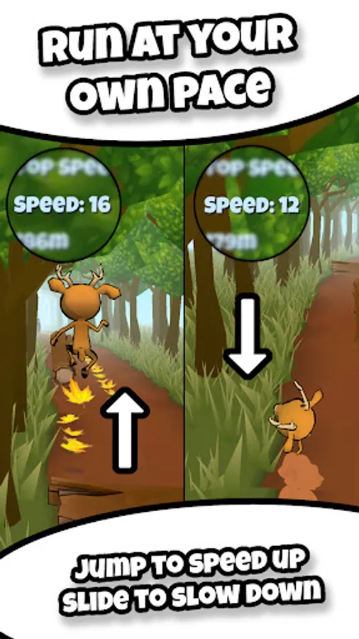 • Run at your own pace! Jump to speed up and slide to slow down.