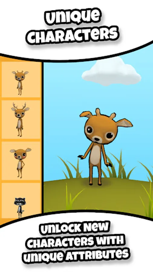 Help the deer of the forest, Buck, Doe and Junior, travel the farthest and fastest any deer has ever gone! But watch out for danger!