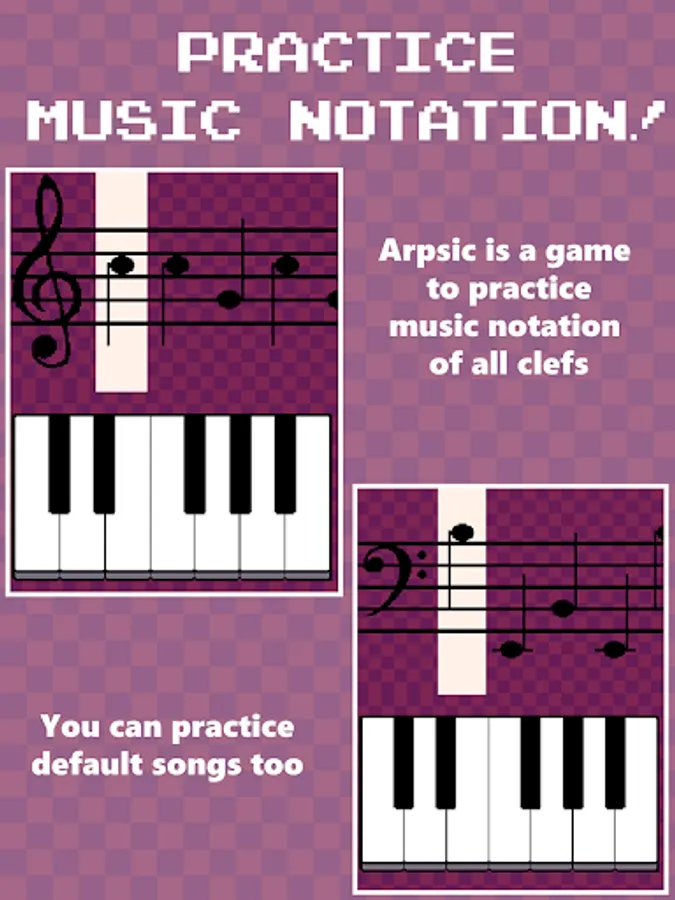 Arpsic is a casual musical rhythm game. With Arpsic, you can train yourself with intuitive lessons, learn the treble clef, bass clef, and more!
