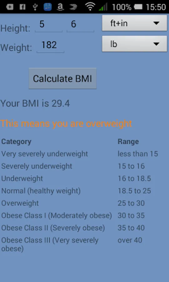 You can enter height in feet & inches or centimeters (ft+in or cm).