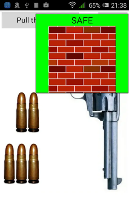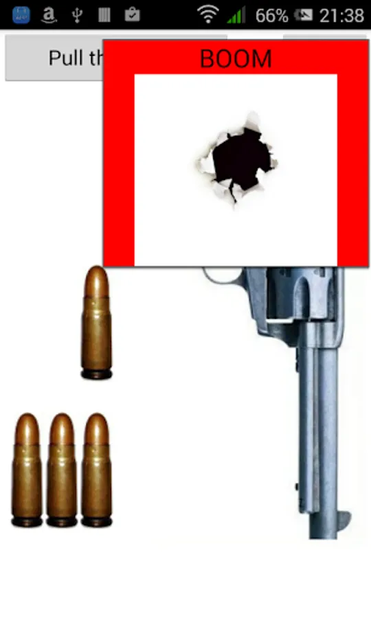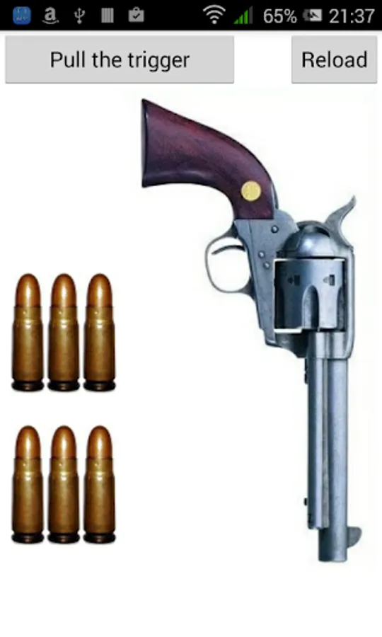 A silly prank with magnum revolver gun and bullet icons. The chamber will be empty on 5 out of every 6 attempts. Play safely with your friends thanks to this easy to use app.
