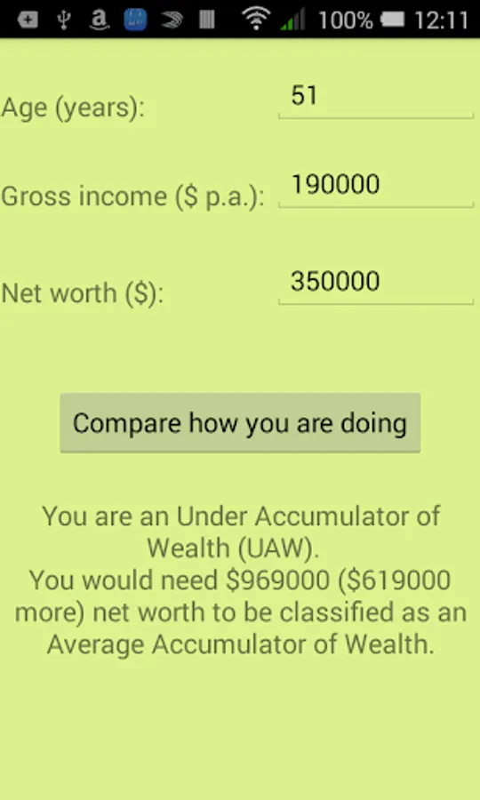 Formula based on the Wealth Accumulator formula popularized by Thomas J. Stanley and William D. Danko's