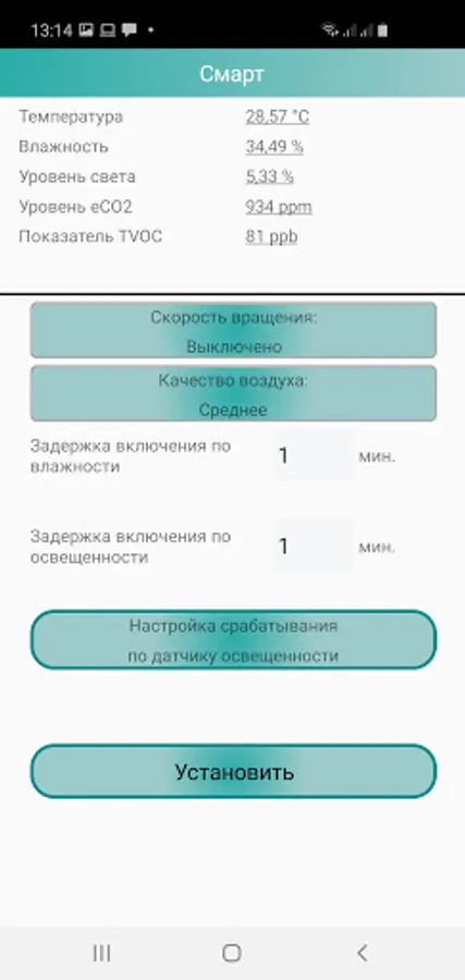 The fan, using built-in sensors for air quality, temperature, humidity and illumination, decides to ventilate the apartment and remove stale air into the exhaust ducts with different removal rates. The device is configured from the phone.