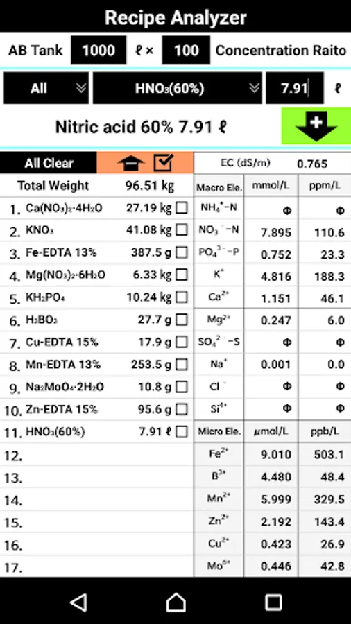 The major function of this tool is the efficient and precise calculation of the nutrient solutions for various crops based on regularly analyzed data by the user and the existing standard nutrient solutions in the hydroponic culture and prices of the fertilizers.