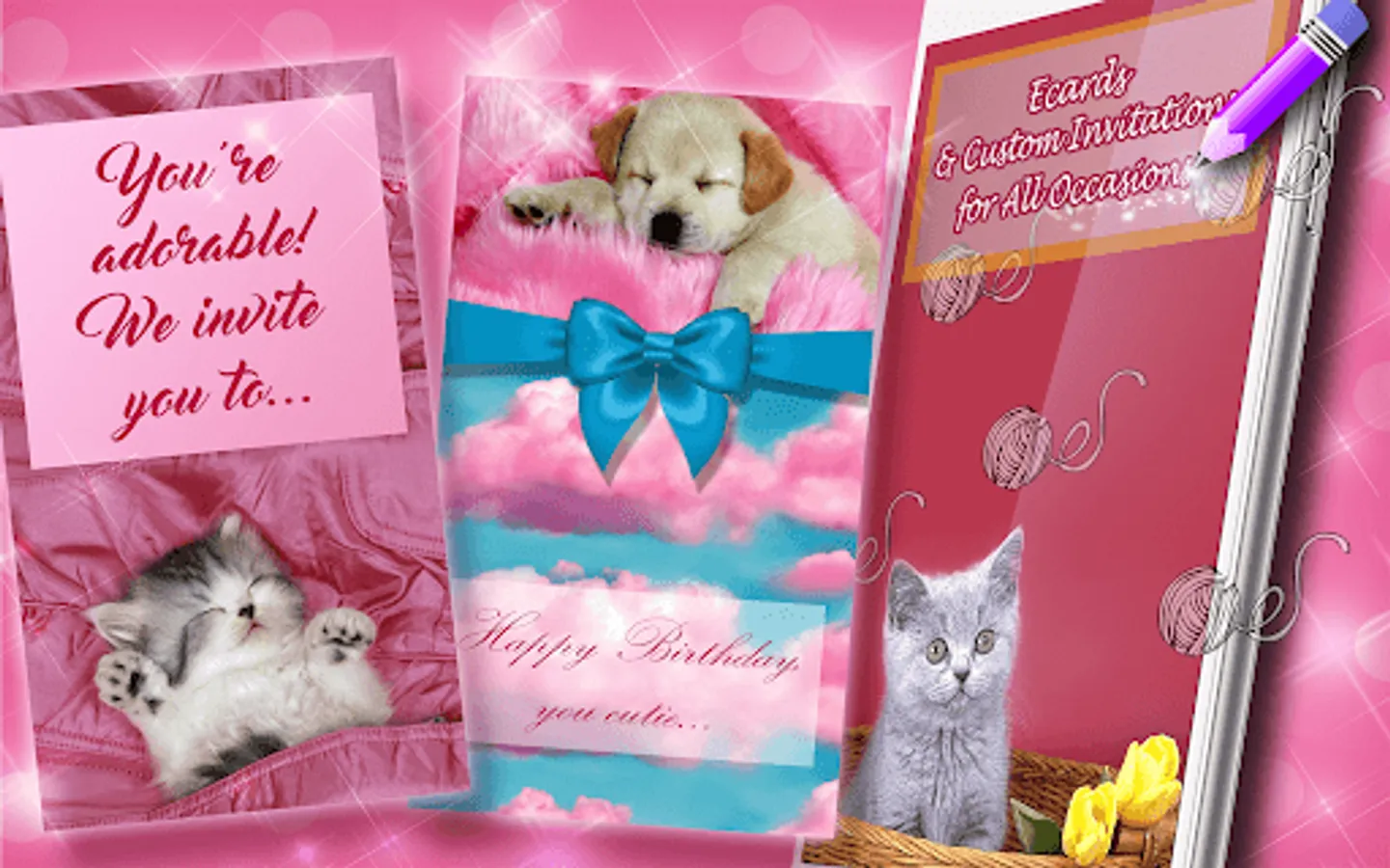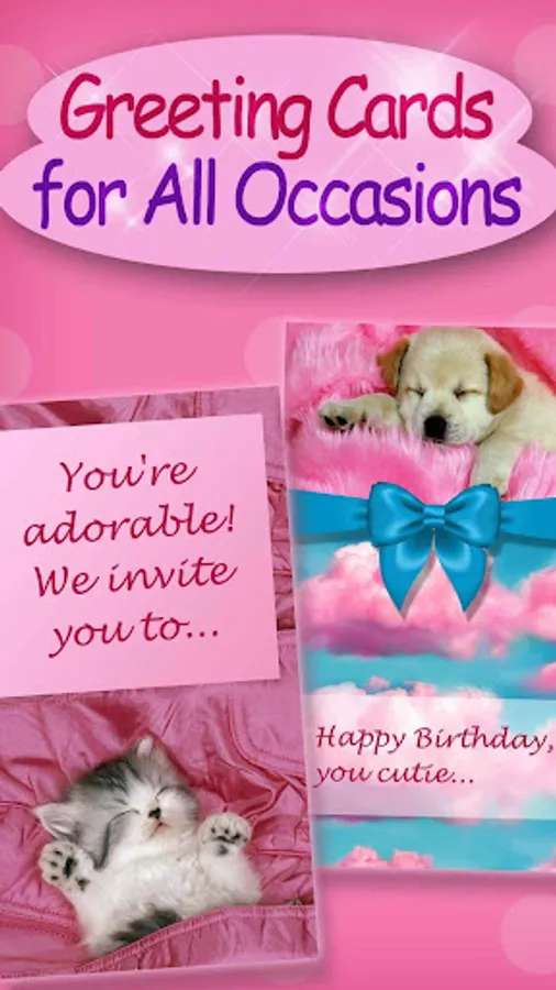 Do you like romantic poetry and romantic pictures? Why not combine them in a photo editor which is full of puppies, kittens and a bunny here and there? This way, you will make perfect greeting cards and other ecards. This photo editing software called Greeting Cards for All Occasions can be classified into girl games category, as girls like this type of ecards app the most. However, it can also belong to games for boys category as some boys might like to send birthday cards and Christmas cards to their friends. When you download this , fun and cool app, you will get a bunch of small animals, such as cute kittens, which are mostly present in all the apps for teenage girls. When you add text to pictures, and especially these cute and beautiful romantic images, you will have great thank you cards and funny birthday cards for your friends and family. All you need to do is to come up with text for these birthday ecards.