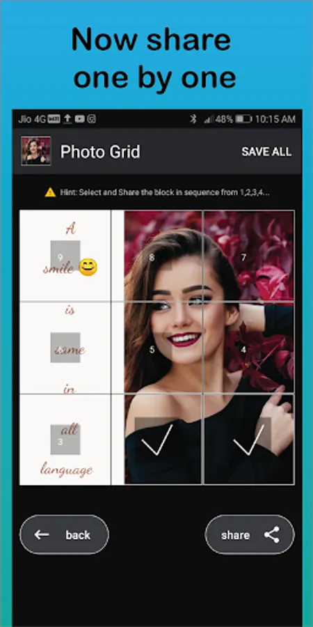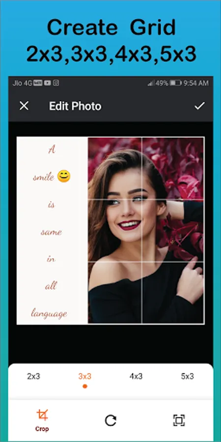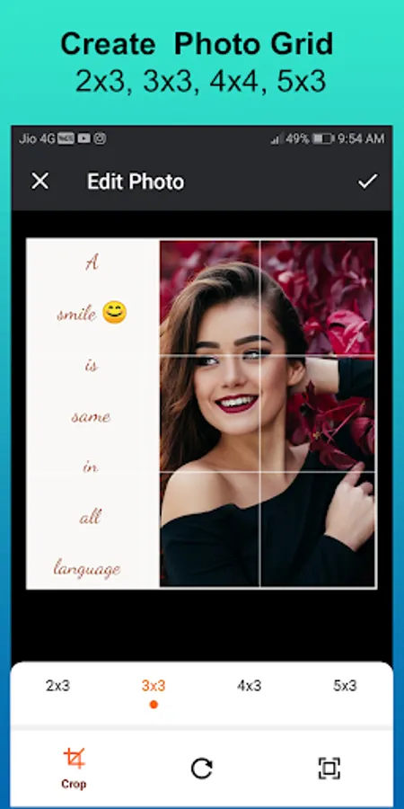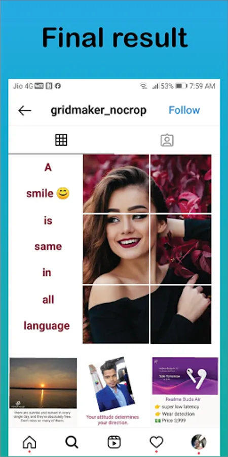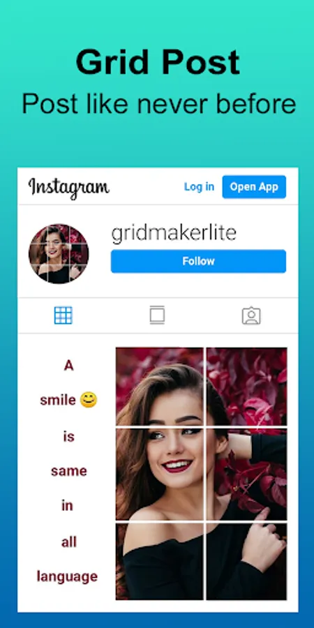 This app lets you create a photo grid in 2x3, 3x3, 4x3,5x3 row-column for Instagram, which lets your user view your post on full screen in a new way, without opening it.