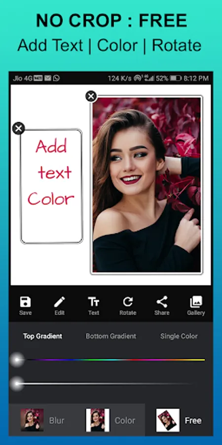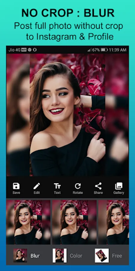 • Post full photo to social media and profile photo without crop using No Crop or Square fit feature.