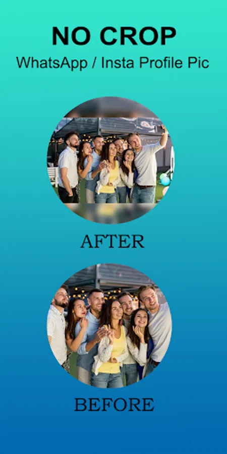 Post a full photo of any aspect ratio to Insta, WhatsApp, and Facebook profile without cropping. For the complete profile picture, you have three options,
